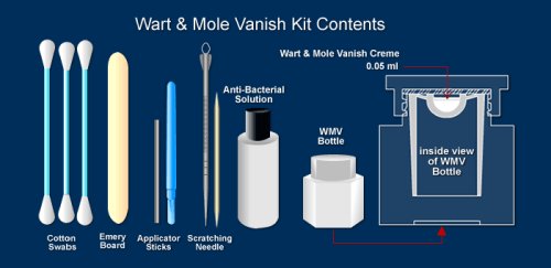 Wart Mole Vanish Award Winning, All Natural, Wart, Mole, Skin Tag, Syringoma & Genital Wart Remover Removal. Remove with only ONE 20 minute application! No daily application of creams, oils or acids. Pristine Herbal Touch - the only authorized seller
